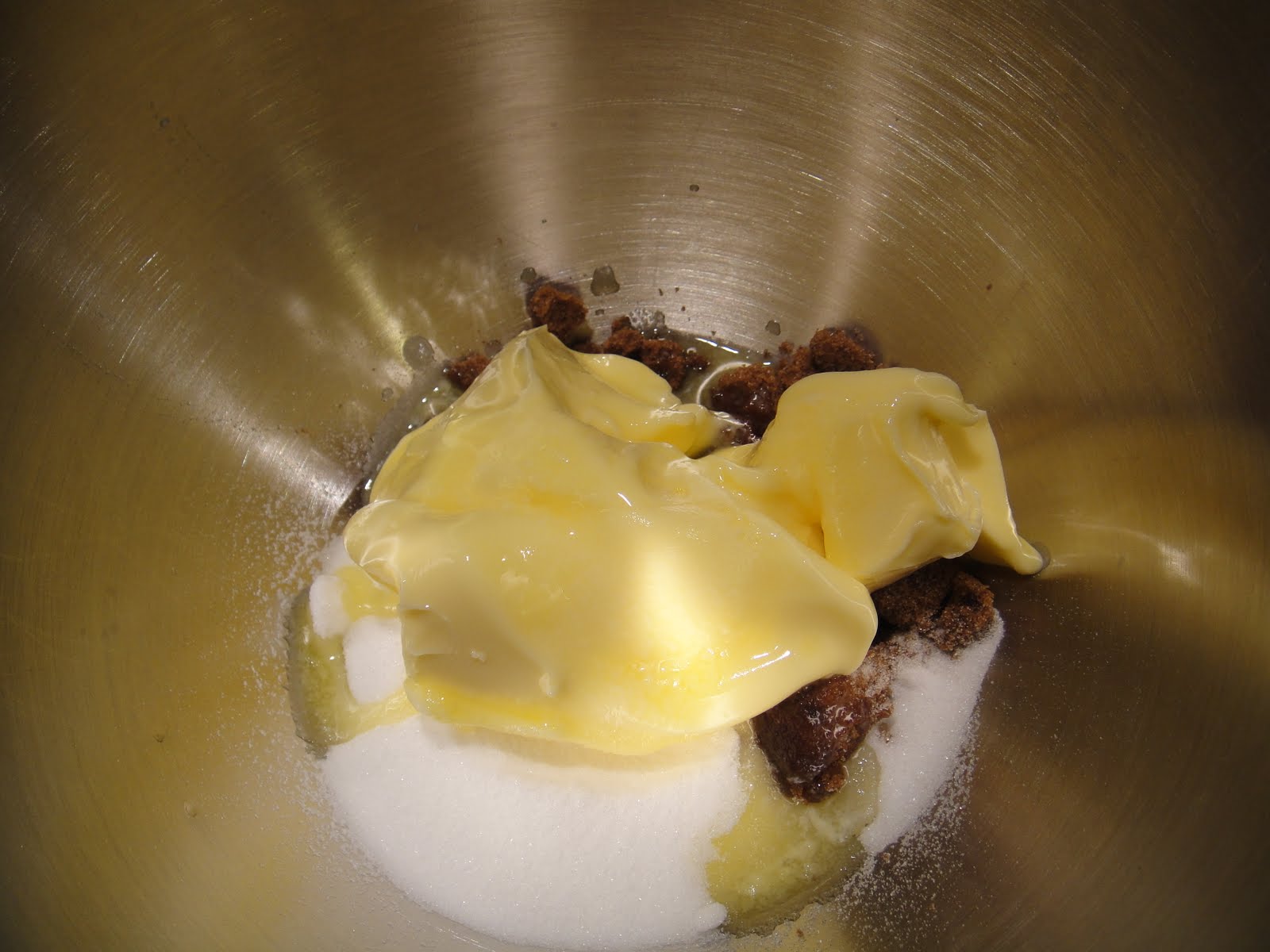 - Stir eggs, vanilla, sugar, golden syrup, baking powder and salt.