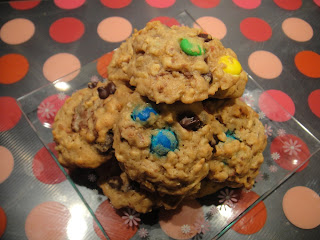 The cookie monster is back :) I just can't stay away from them... I love cakes but cookies are my real weakness. I saw these on brown eyed baker and knew I just had to make them. I made a few modifications as I didn't have all the ingredients to hand and they turned out really well! I have to say I much prefer the chocolate chip cookies which had a cleaner, simpler taste. Those are my favourite cookies to date and I would highly recommend them. Although I like peanut butter, I think the taste of peanut butter in this cookie was a little overpowering. Don't get me wrong, they were still very good particularly if you need a sugar hit! The other plus point is that this cookie is really easy to make as its a 'mix everything and bake' recipe. No need for any fancy kitchen equipment and if you're like me, you'd have all the ingredients to hand.