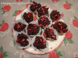 Her blog is beautifully laid out and easy to navigate. I went straight to the recipe index and unsurprisingly chose 'Desserts and cookies'. Recipes on my shortlist were Gluten/Dairy/Egg/Soy Free Vegan Quinoa Banana Chocolate Chip Cookies, Oatmeal peanut chocolate chip cookie, Vegan Mango Panna Cotta with Kiwi, Mango and Strawberries and Gluten Free Double Chocolate Fudge Brownie. In the end, I chose her Easy Dark Chocolate Walnut Pomegranate Clusters which she made for a Valentine's treat. I was intrigued as I've never used fresh pomegranate before (I made these at the same time as the pistachio and pomegranate pitstops but had to wait till reveal day to post this recipe) The only change I made was to substitute pecan nuts for walnuts as that was what I had in my cupboard. They were really easy to make and tasted delicious! Everyone enjoyed these treats especially those with gluten intolerance.