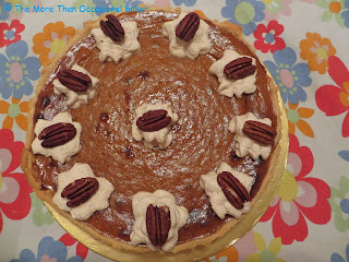 joyofbaking.com. I used my mum's recipe to make the crust and filled the base with crushed, roasted pecan nuts and ginger biscuits which hopefully gives added crunch, texture and flavour to the pie and prevents a soggy bottom as it will absorb the moisture of the filling. I added ground cinnamon, mixed spice and ground ginger to the filling. I managed to make a mini pumpkin pie as I had some leftover pastry and filling so I've already had a little taster and it tastes good. It does not have thepecan/ginger layer so I am curious to find out what that tastes like! The pumpkin pie itself has a lovely buttery crust with a smooth filling and a hint of spice. It's not overly sweet probably because I reduced the sugar amount but goes well with sweetened spiced cream. I'll update my blog later when I have photos of the sliced pie.