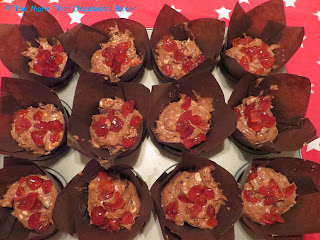 These muffins are really quick and easy to make. No special equipment required and the washing up is done whilst the muffins are in the oven. I think they look quite festive with the cherries on top. You can also add a drizzle of white chocolate for the extra wow factor.