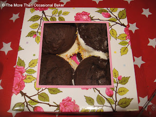 I wanted to bake something special for her to celebrate her success.  I remember her telling me that my Lemon Whoopie Pies were the best thing I've ever baked and she has tried a LOT of my baking! I decided to try the chocolate whoopie pies this time and use my jar of Marshmallow Fluff which I found in Asda. I used Dan Lepard's recipe again for the whoopie pies which turned out beautifully. I made a marshmallow fluff buttercream as fluff on its own is really, really sticky!